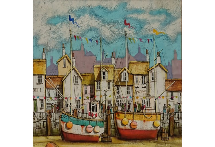 Harbour Scene #1 - Mixed Media - On Board - Framed - 20.5 x 20.5 inches - inc Frame - SOLD