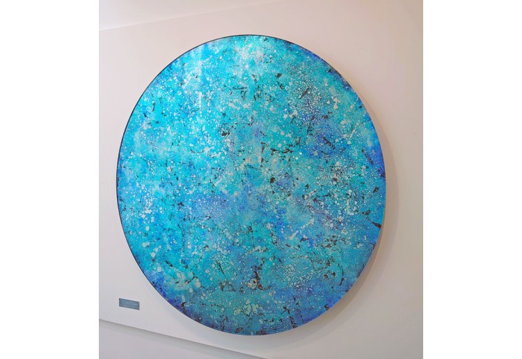 Blue Moon - S/No.6821 - Polychromes, Paint, Micas, Lustre, Enamel, Silver Leaf on Glass - 850mm Diameter SOLD