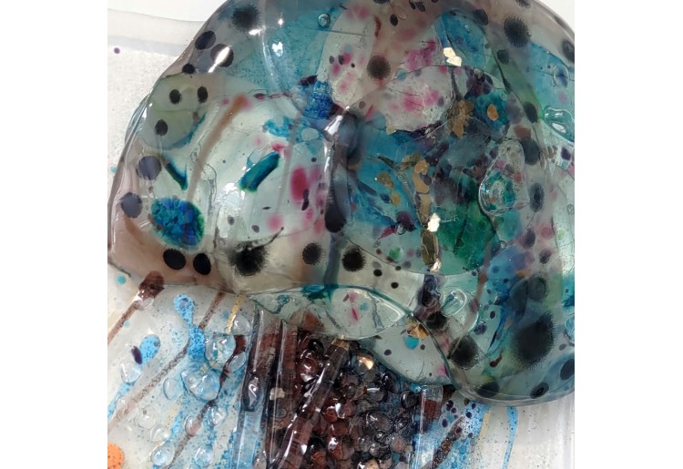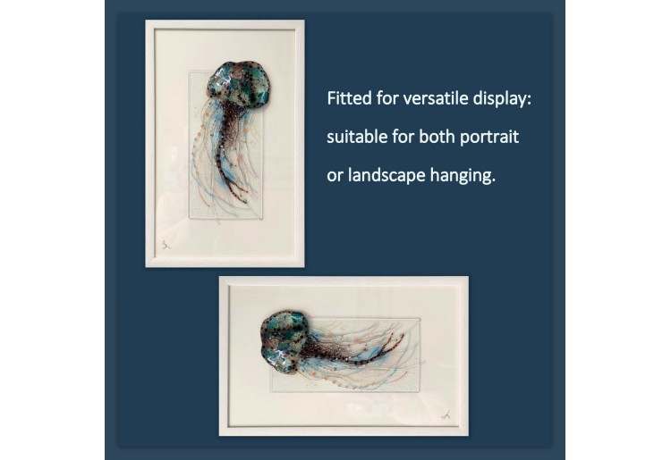 Jellyfish - Fused Glass, Enamels & Gold Foil Flakes, Floated on Glass - Framed 33 x 4.5 x 51 cm *Image shown is as an example