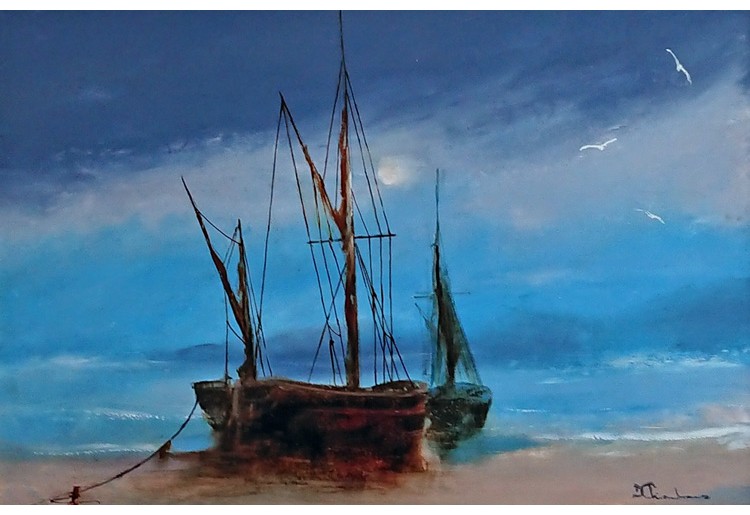 Moonlit Mooring - Oil on Board - Moonlit Mooring - 39 x 26cm - Framed - 55 x 40cm SOLD