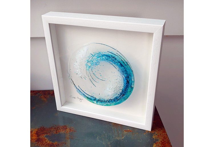 Small Tidal Wave - Round - Fused Glass, Frits & Enamels, Floated on Glass - Framed 31 x 31cm  *Image shown is as an example